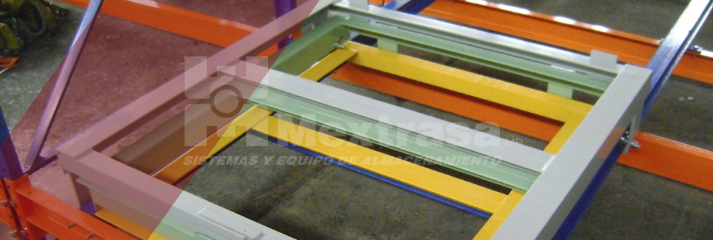 Es un sistema de almacenamiento de alta densidad, en el cual las cargas paletizadas son depositadas sobre carros o bastidores provistos de ruedas. Los carros se deslizan con la mercancía sobre rieles inclinados a lo largo de túneles de almacenamiento con dos a cinco tarimas de profundidad. Es un sistema de primeras entradas, últimas salidas (LIFO).